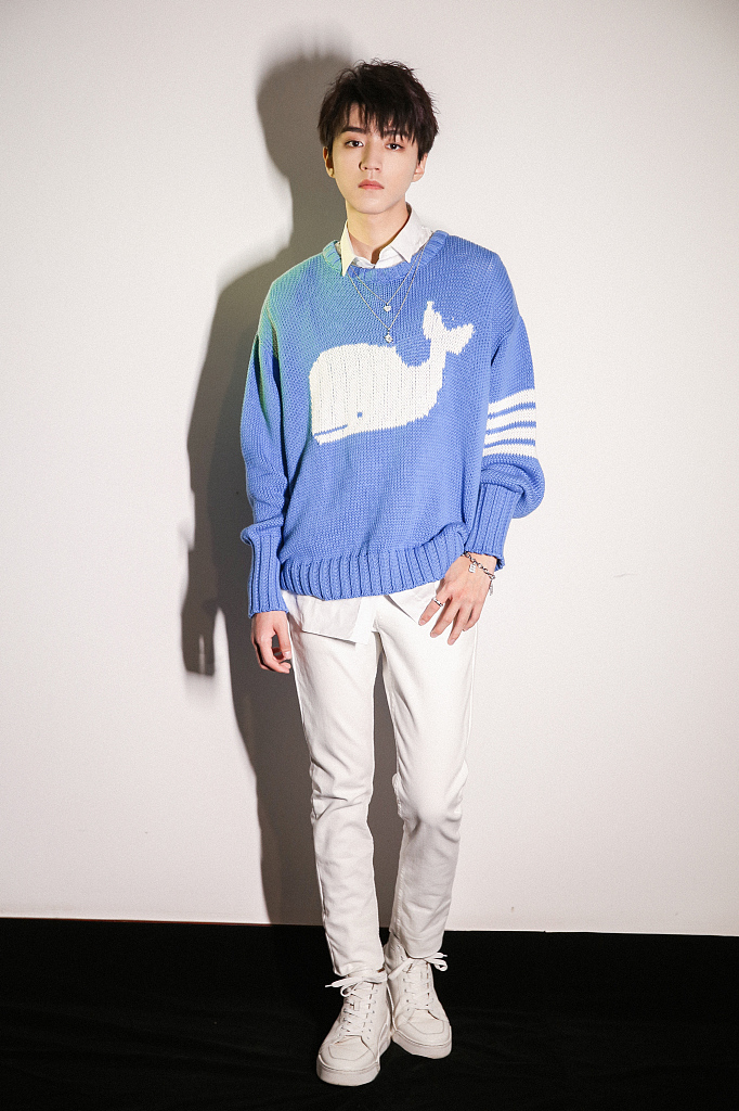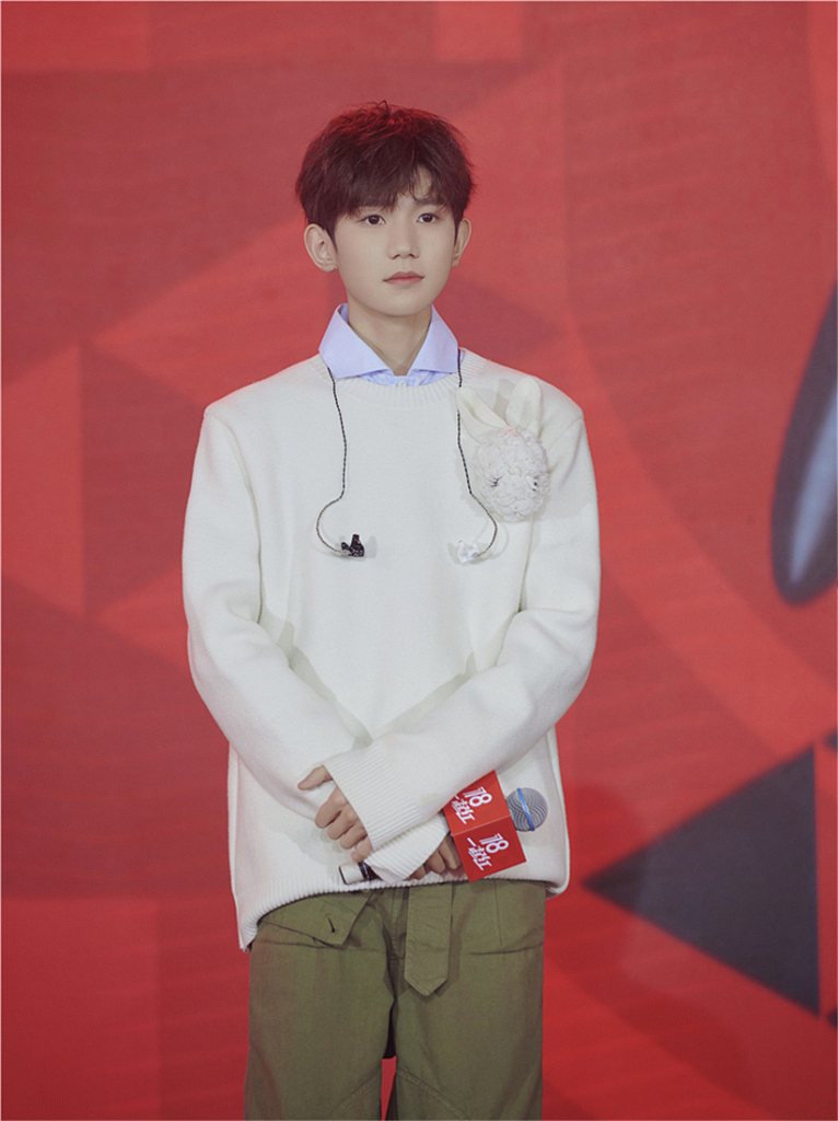 王俊凯的这一身搭配简直给人洗眼睛般的舒适感。Thom Browne的卡通图案毛衣内搭白衬衣、白色休闲裤加上小白鞋,温柔又阳光,这样清爽干净的大男孩简直“只应天上有”。