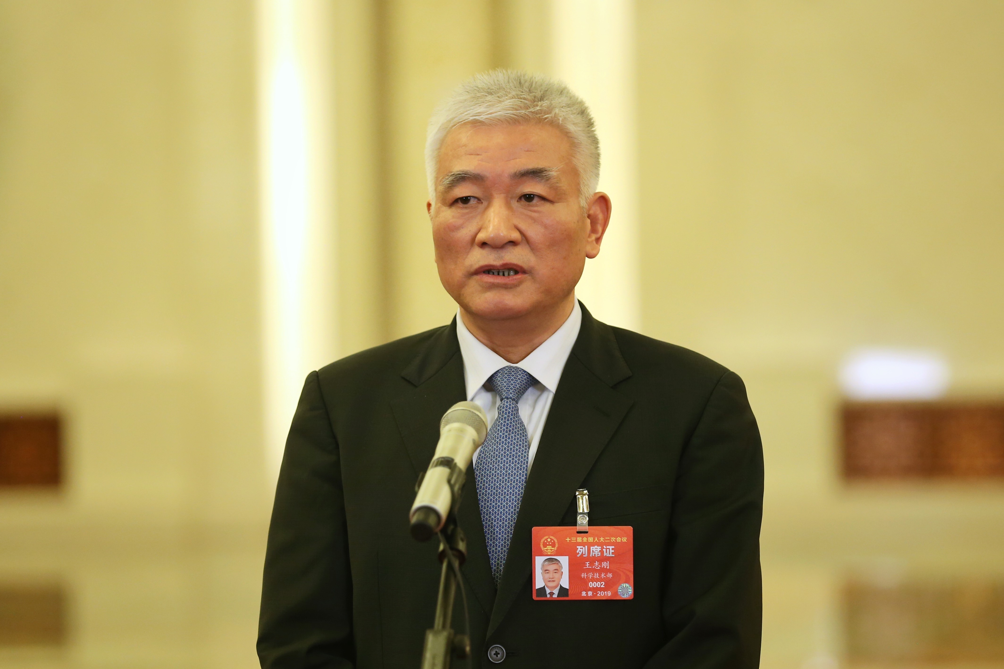 科学技术部部长王志刚在“部长通道”回答记者提问。新京报记者薛珺 彭子洋 摄