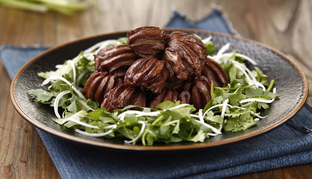 在烤制方法上,八爷乳鸭绝对“遵循古法”:“枣木鸭子,梨木炭”,花家怡园相关负责人告诉记者,八爷乳鸭用自古以来大家都推崇的枣木烤制而成,枣木烟轻、火硬、火稳,赋予小乳鸭果香气。烤好的小乳鸭,色泽枣红,身形挺拔。
