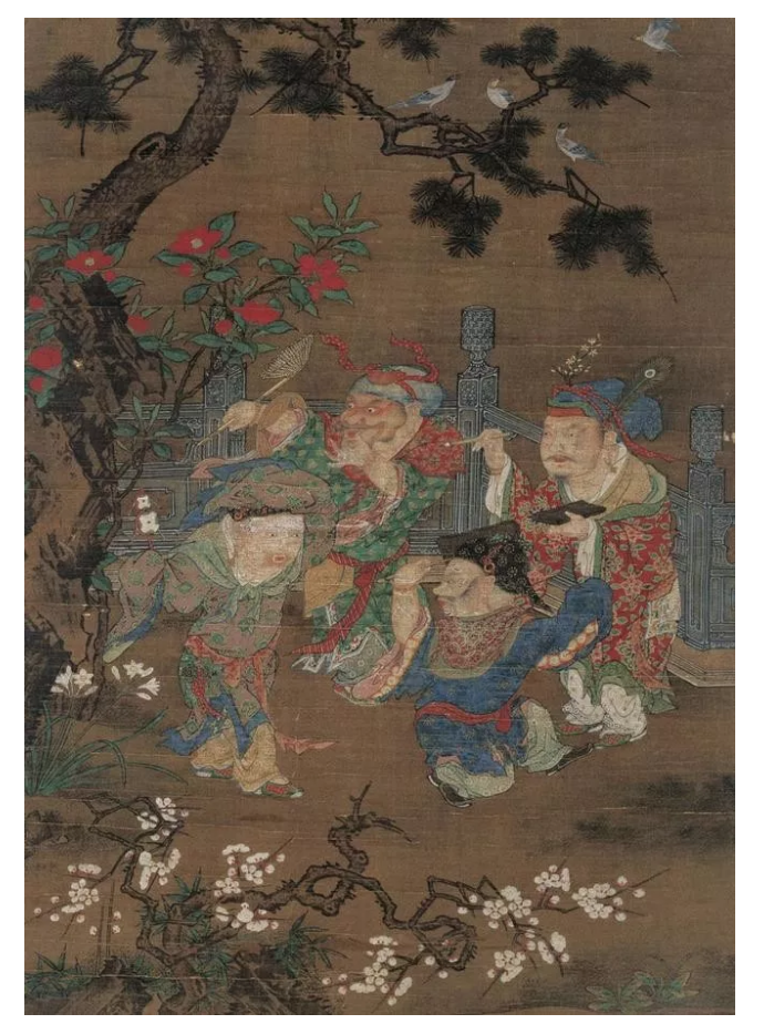 《大傩图》,表现了驱鬼傩戏的情景,现代学者认为,鬼的来源很可能就是古代祭祀仪式中戴面具的人。