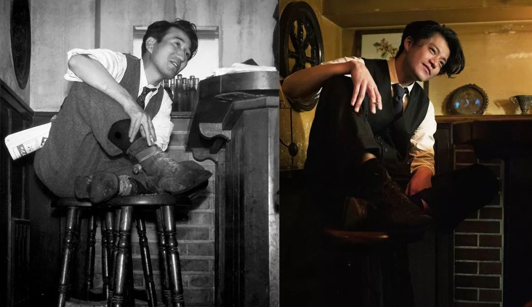 左为太宰治。右为日本演员小栗旬扮演的太宰治。图片来自2019年电影《人间失格》制作委员会。