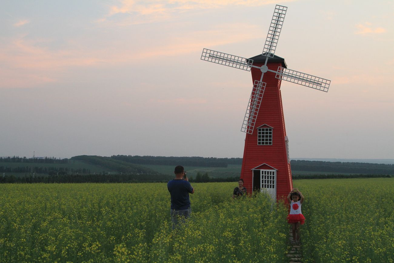 2020年7月12日,黑龙江省黑河市嫩江市,北大荒集团黑龙江省荣军农场油菜花绽放,美丽景观吸引远近游人前来旅游观光。