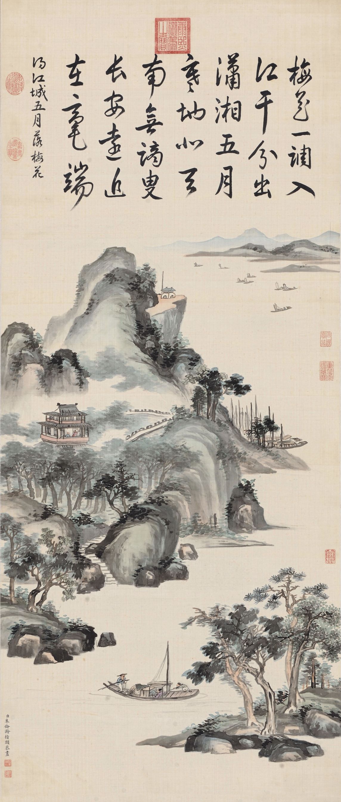 朱伦瀚《潇湘烟霭图》。朱伦瀚《潇湘烟霭图》为《石渠宝笈初编》著录,重华宫旧藏,是指画艺术经典作品之一,画幅上方有康熙帝亲笔题诗,是艺术家艺术生涯中巅峰的代表性作品。