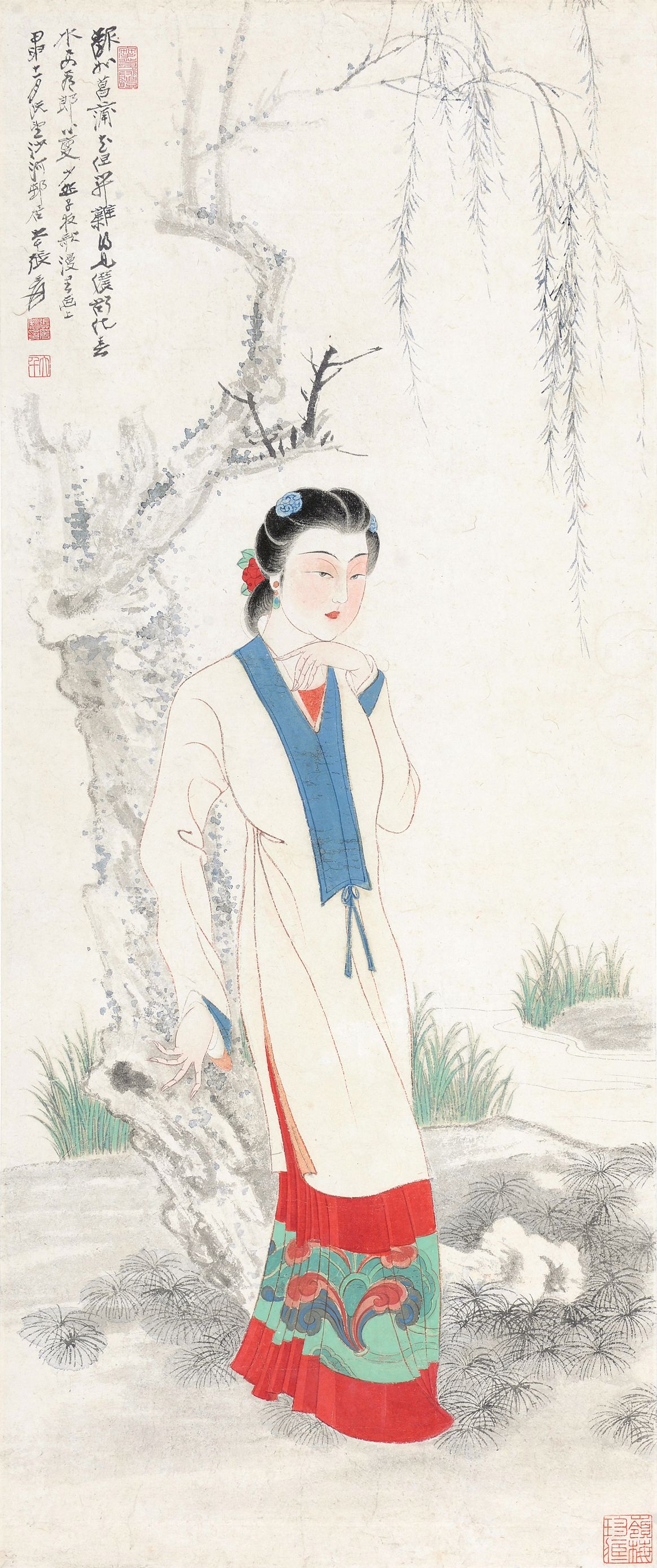 张大千《倚柳忆春》,高岭梅旧藏。中国书画板块拍品。
