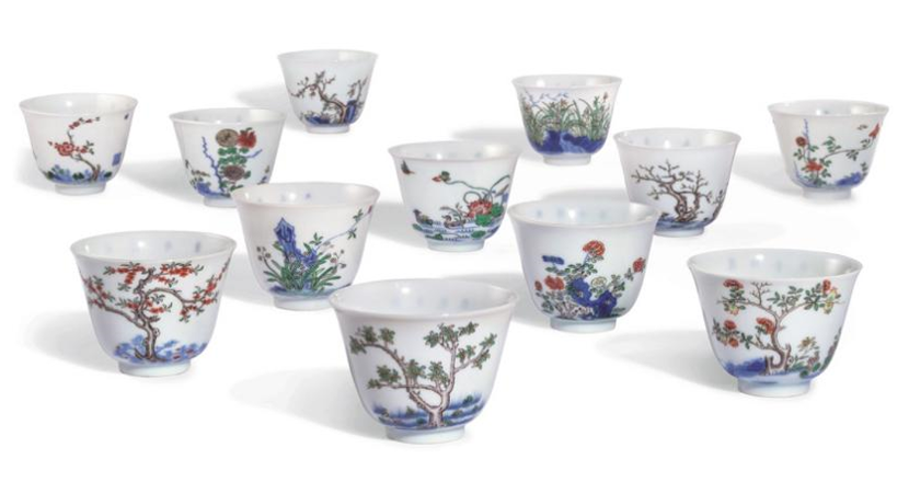 清康熙五彩十二月花神杯。古董板块拍品。