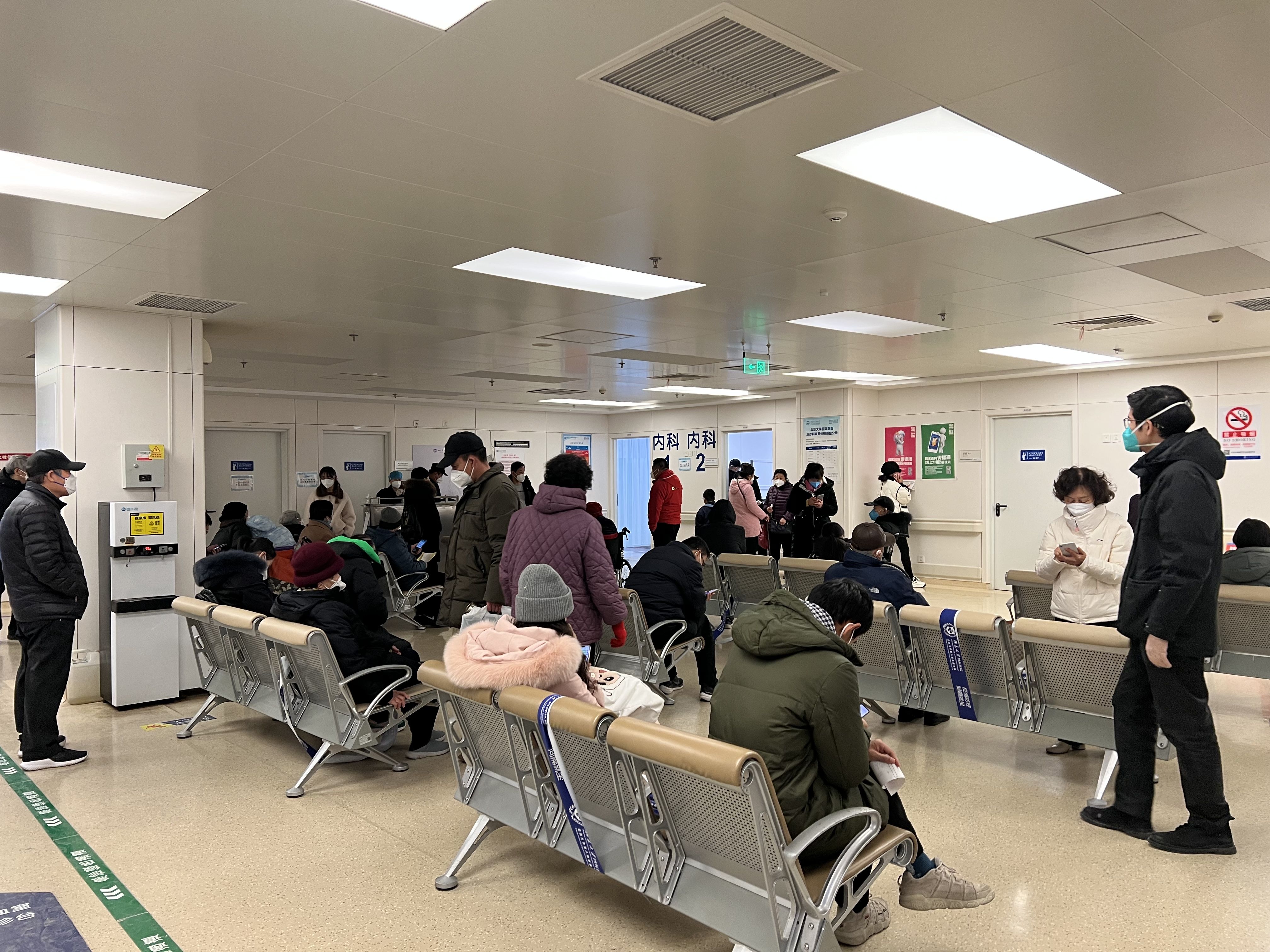 12月28日,北京大学国际医院发热门诊,不少患者正在候诊,但就诊量已明显回落。北京大学国际医院供图