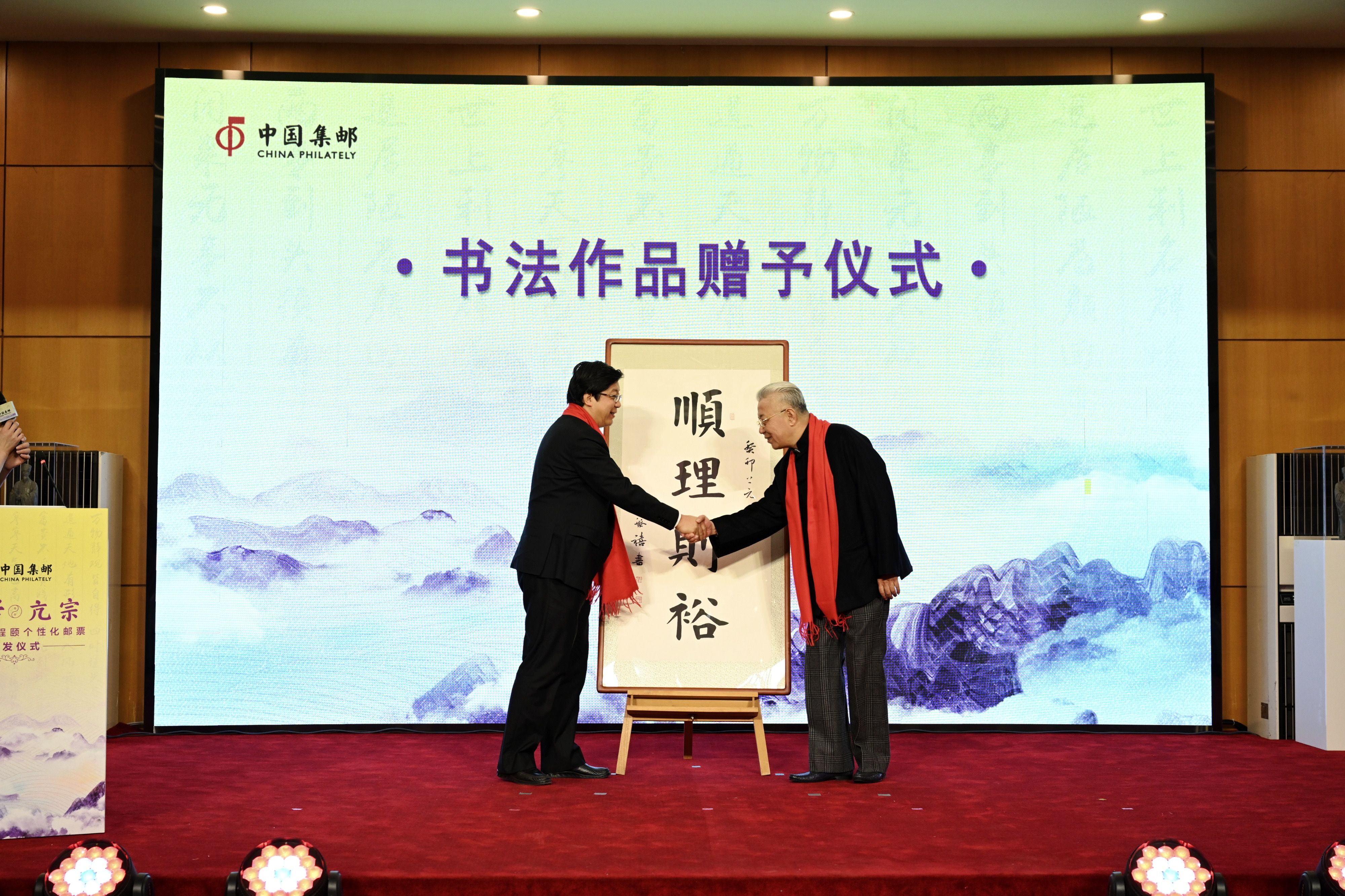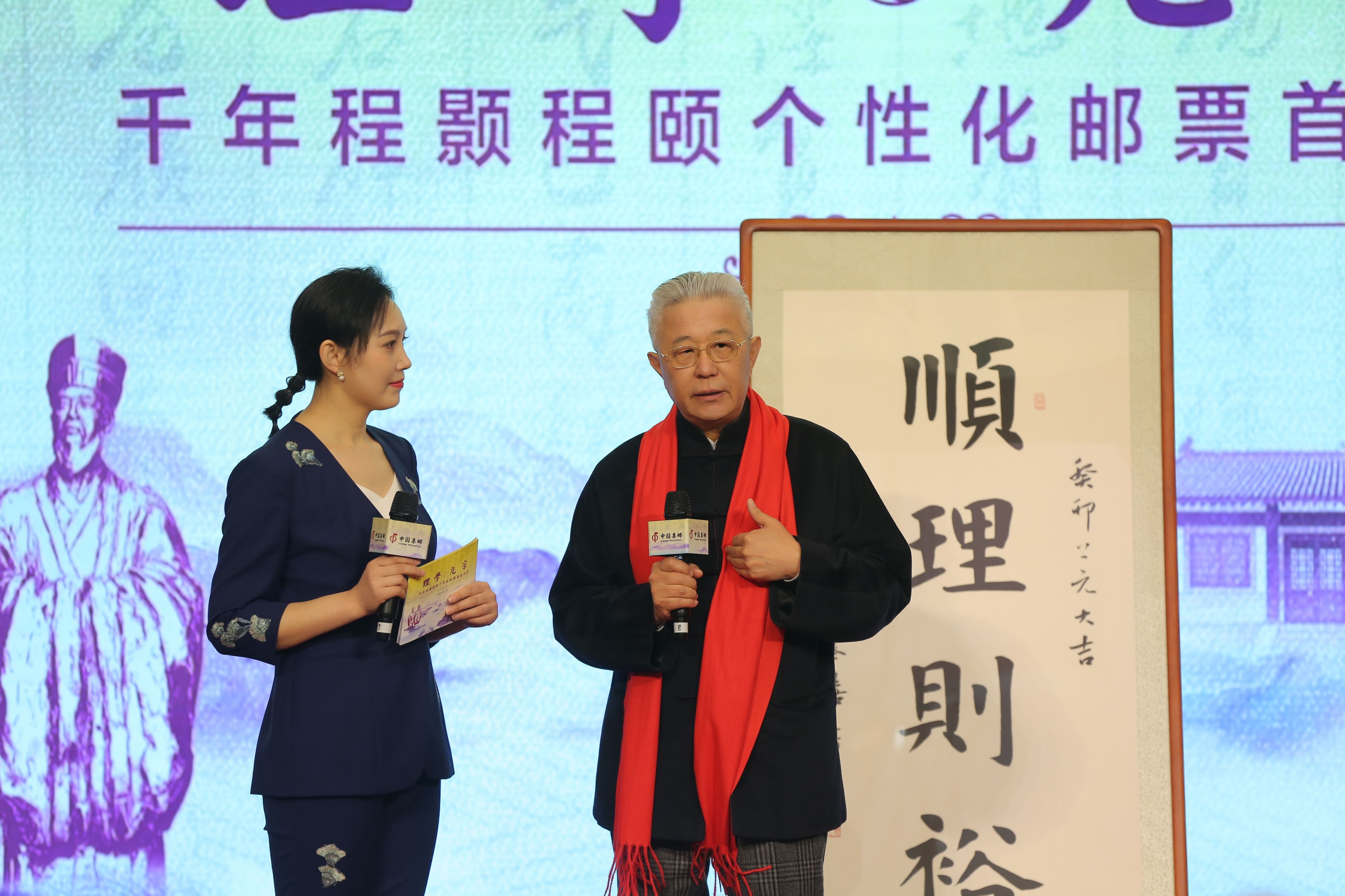 二程“名句“顺理则裕”等特邀了著名书法家孟繁禧先生进行手书,在细节描摹中注入的文化底蕴尤为深厚。两位艺术大师莅临活动现场,畅谈了创作中的心得与感触,孟先生将他的书法作品原作赠予中国集邮有限公司。