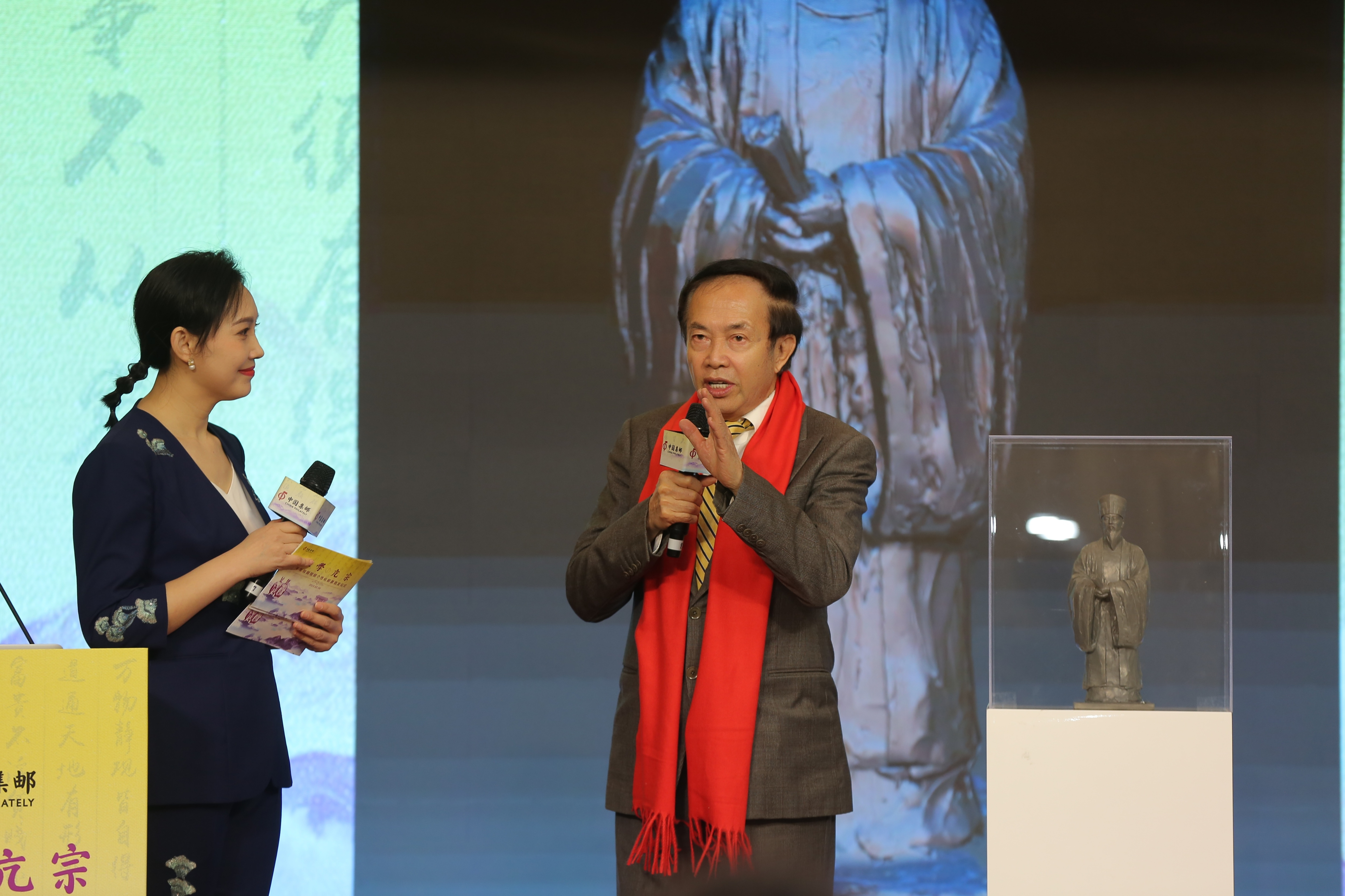 联合国首授环保艺术大师、北京金台艺术馆馆长、著名艺术家袁熙坤先生创作的程颢程颐雕塑现场展出原作,大家期待已久的《理学亢宗——千年程颢程颐》个性化邮票设计图稿正式在广大集邮爱好者面前揭幕亮相。