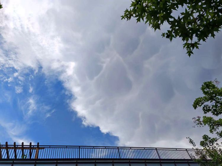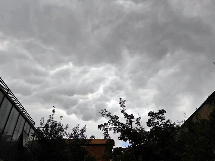 6月7日15时许,北四环附近,灰色的乳状云出现在北京上空。据@气象北京消息,午后虽然有雷阵雨的加盟,但今天最高气温较昨日的35.1℃(15:00)依旧没有“ 冷静”下来,“炎值”飙升,继续冲顶至37.6℃(13:16),高温黄色预警中。
