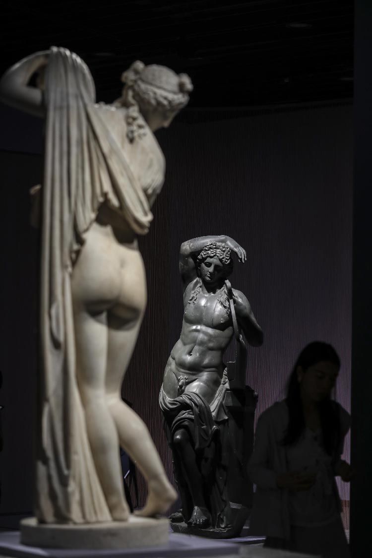 6月12日,中华世纪坛艺术馆,“古罗马文明之光——意大利那不勒斯国家考古博物馆珍藏展”开幕。意大利那不勒斯国家考古博物馆作为全球最重要的考古博物馆之一,拥有全世界范围内最完整的古罗马雕塑与庞贝古城壁画收藏,“古罗马文明之光”是这一世界顶级考古博物馆的代表性馆藏主题展。图为公元2世纪的《斜倚的阿佛洛狄忒》。