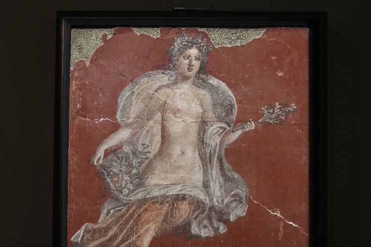 发掘于赫库兰尼姆的公元1世纪的彩绘壁画《酒神女祭司》。展览将持续至10月8日,展览期间,主办方将推出一系列学术讲座、艺术教育等活动。