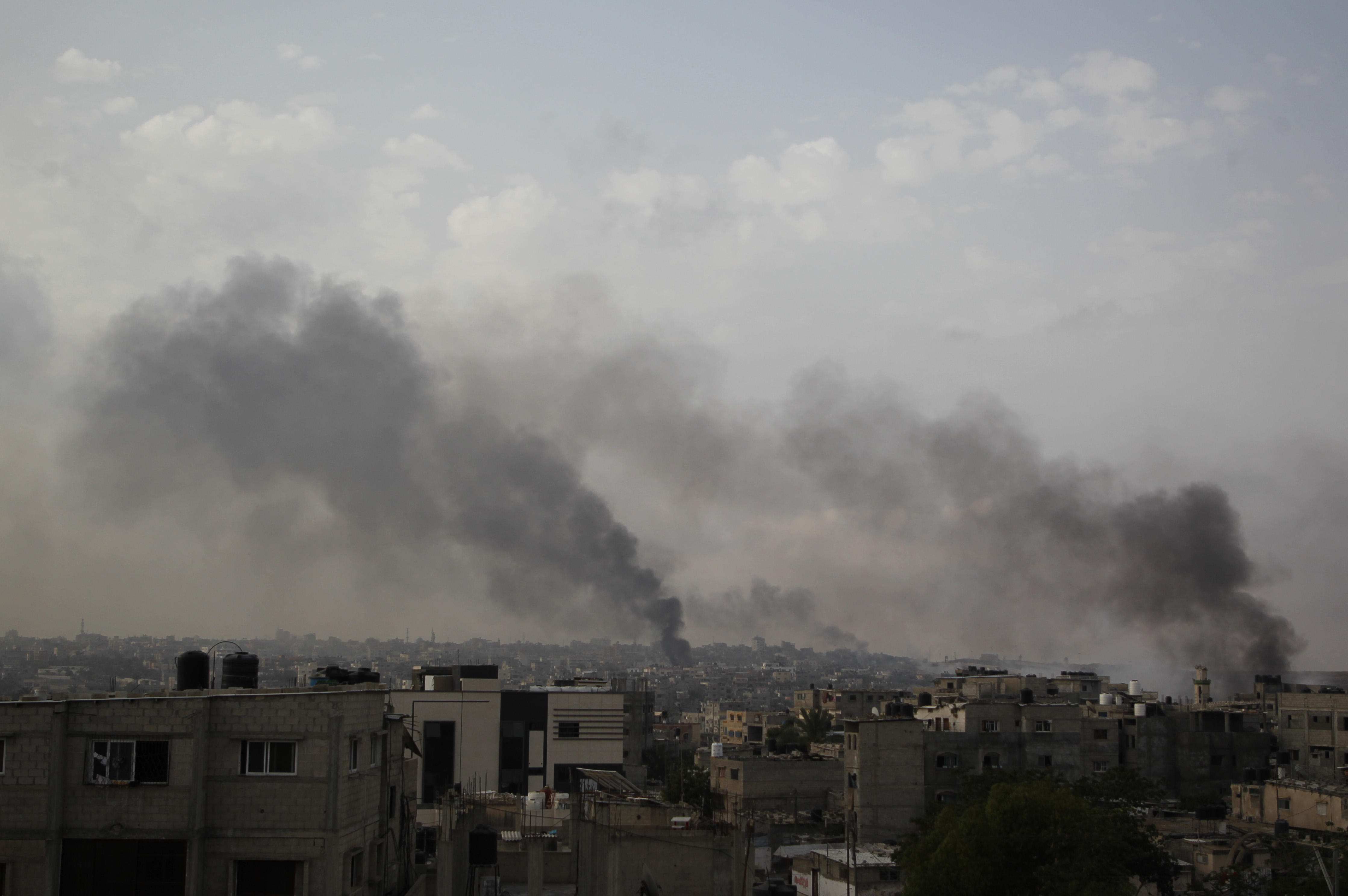 加沙地带南部城市拉法在以军密集轰炸期间升起浓烟。图/新华社