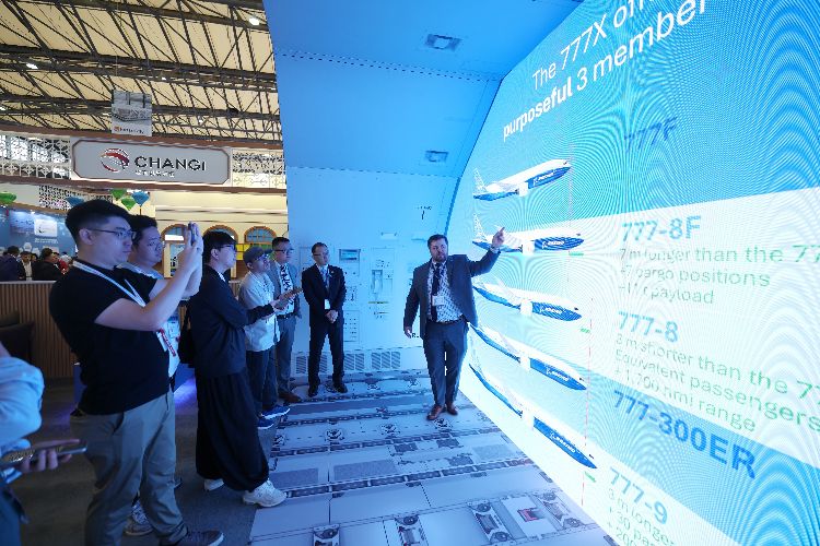 本届物流节设置航空物流设备、智慧交通、物流数智化装备、跨境电商供应链4大展区,集中展示物流服务、航空货运、港口/航运物流、公路/铁路运输、物流地产/仓储园区、生鲜供应链/冷链物流、智慧物流/IT信息系统、物流设备、专用车辆等9大领域最新发展成果。图为卡塔尔航空工作人员介绍航空物流运送的大型物品。