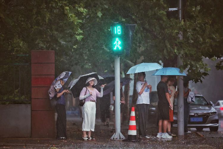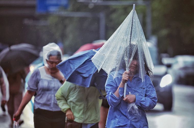 7月24日19时许,四惠,路人雨中疾走。