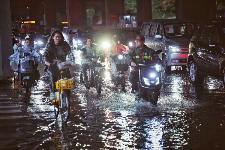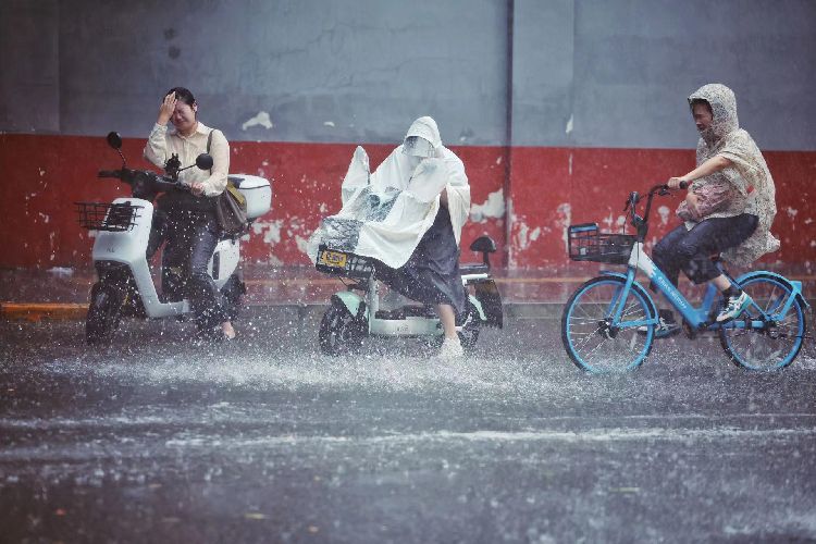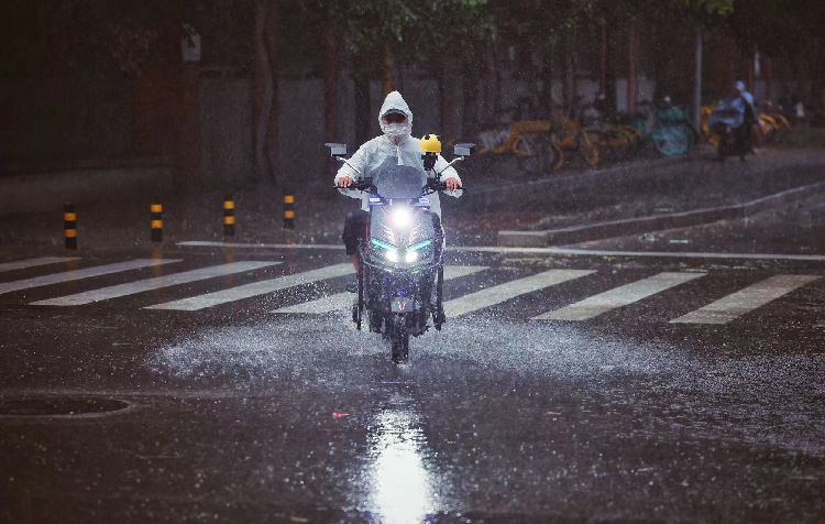 7月24日18时许,四惠,市民骑着电动车快速驶过。