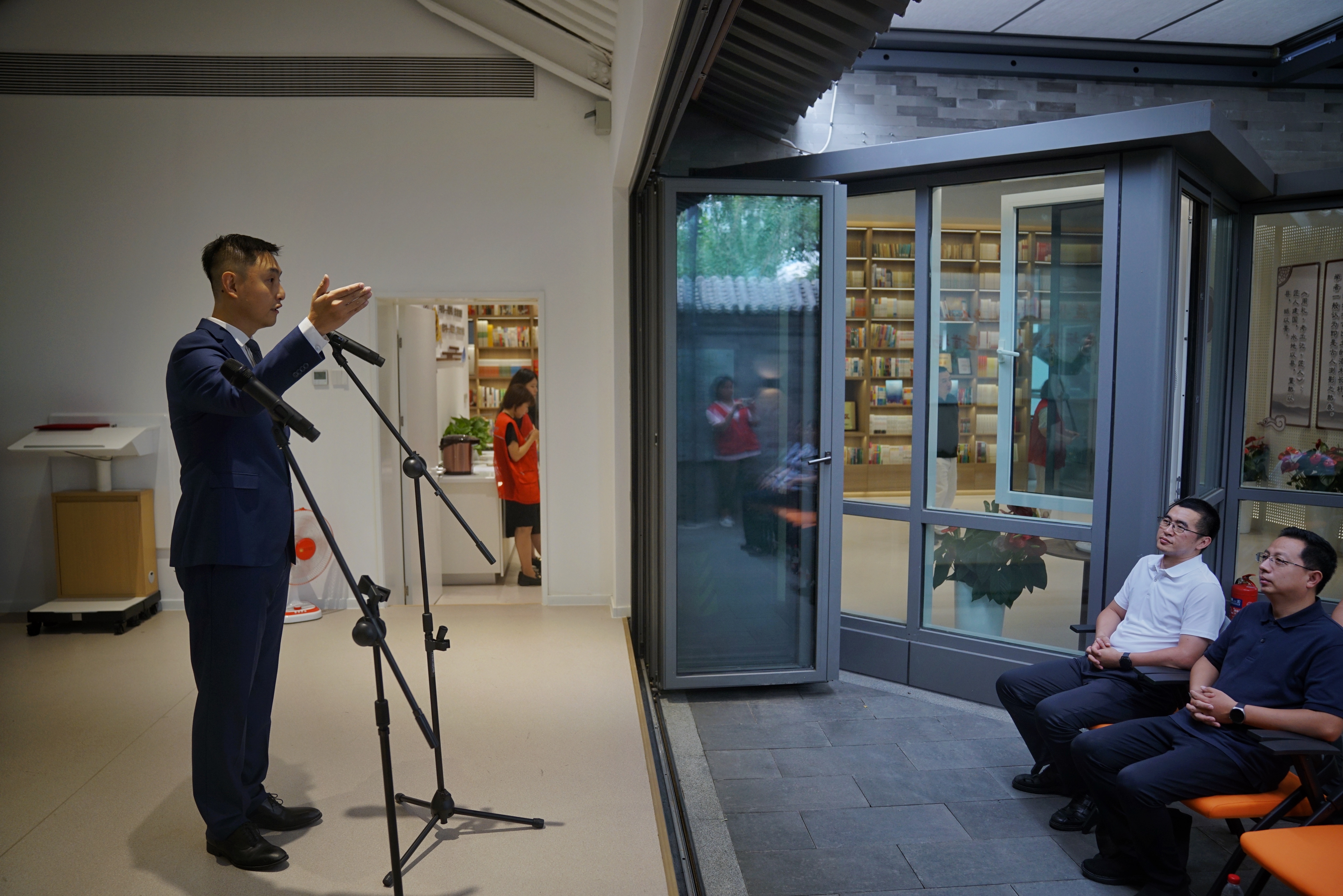 8 月 9 日,西城区什刹海街道旧鼓楼社区公益小剧场,领导和嘉宾为小剧场揭牌。这座公益小剧场已有15年的历史,这次在社区办公新址的揭牌,不仅为社区增添了一处文化交流的重要场所,更是为传承和弘扬优秀传统文化搭建了一座坚实的桥梁。