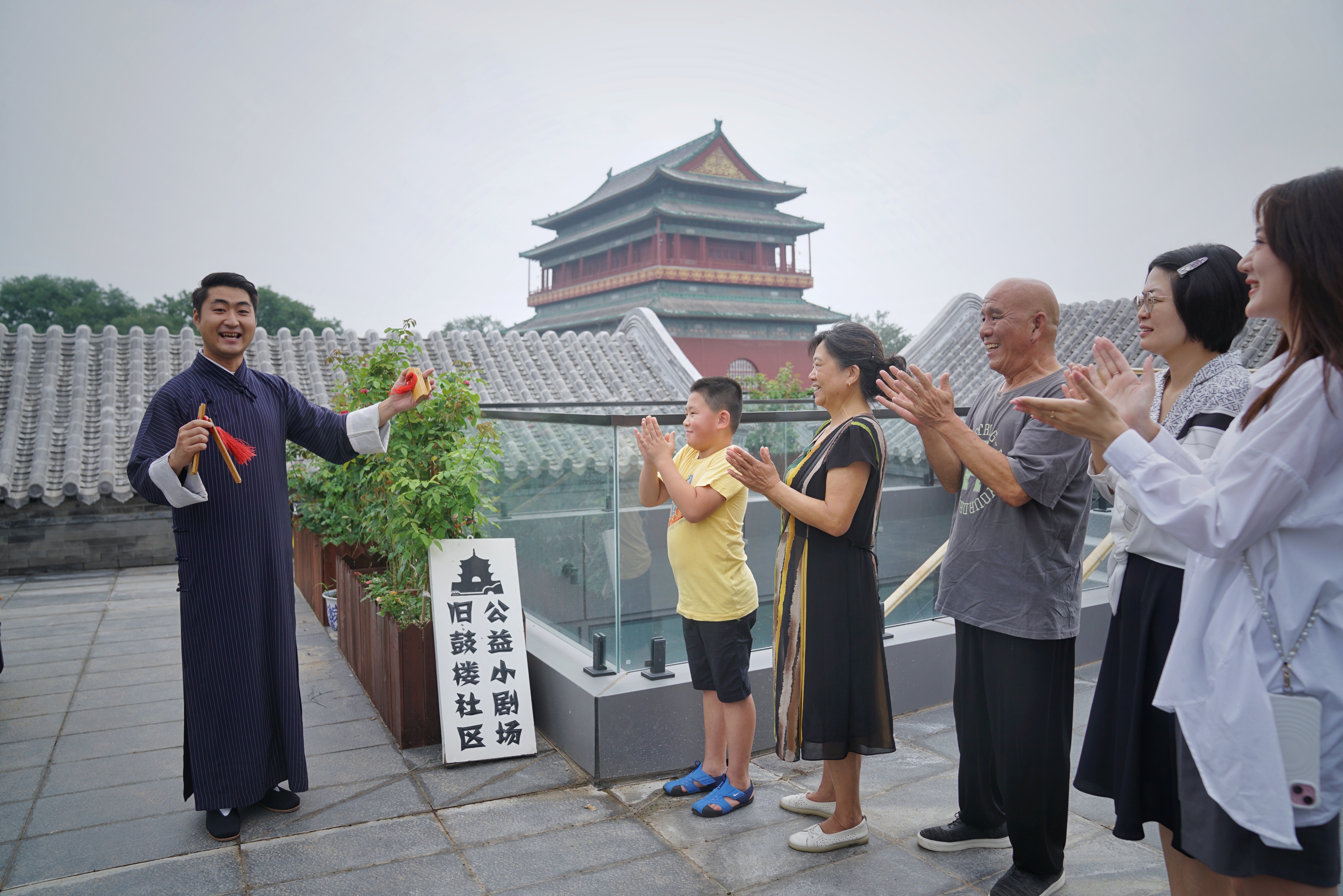 揭牌仪式后,旧鼓楼社区公益小剧场进行了首场演出。曲艺演员孙国松为居民表演快板《最美北京中轴线》。旧鼓楼社区毗邻中轴线北端,将通过一系列以中轴线为主题的文化活动和演出,让居民更加深入地了解中轴线的历史价值和文化内涵。