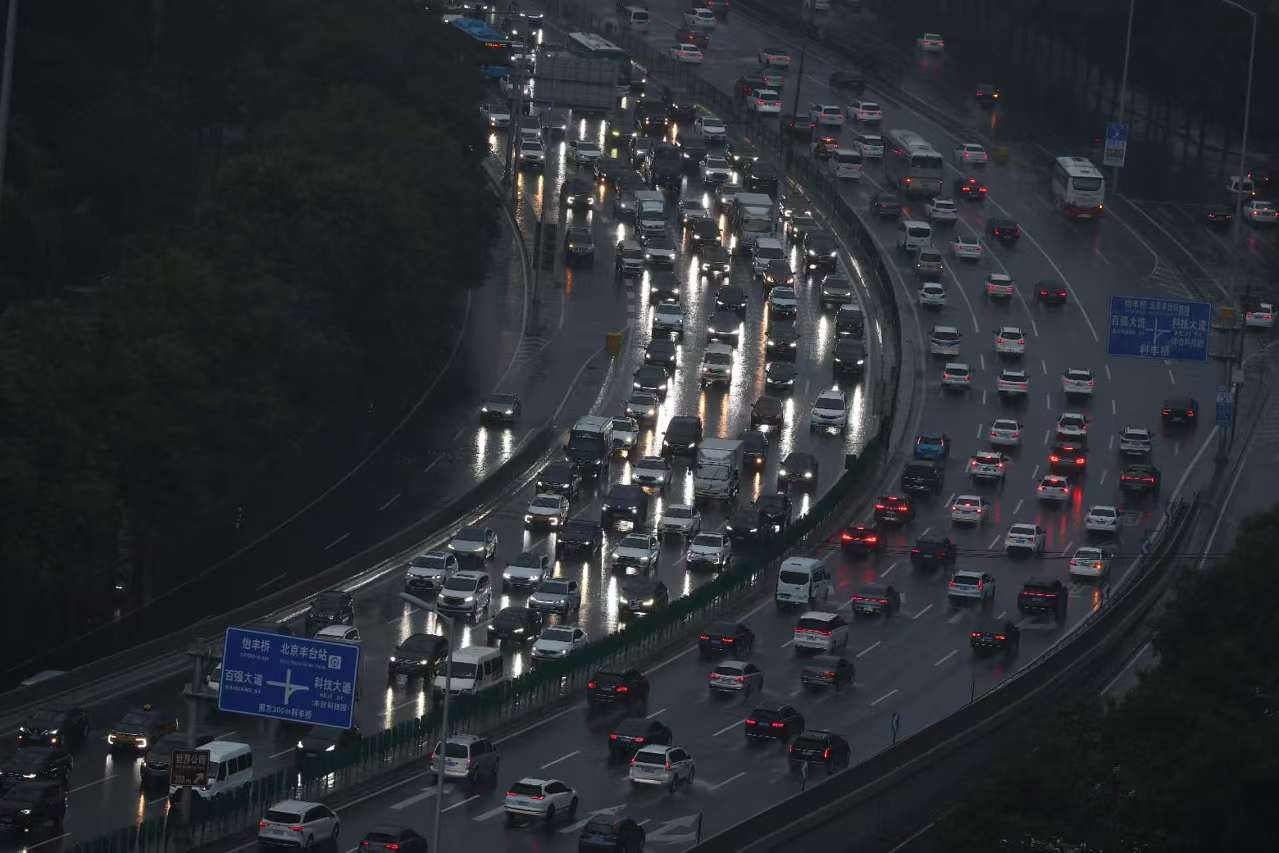 北京暴雨蓝色预警中,早高峰车流量大