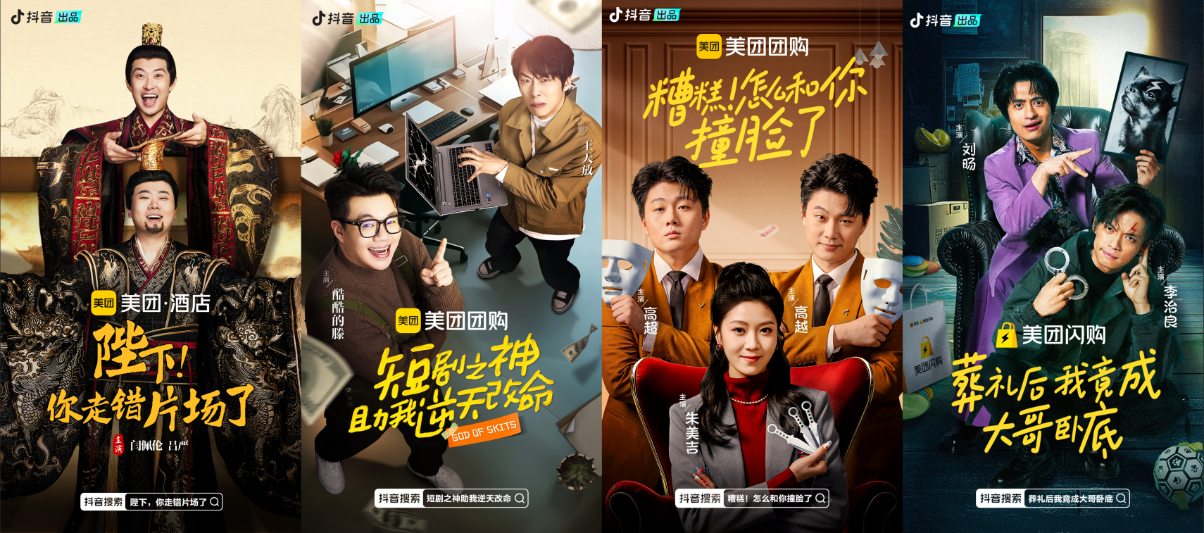 近日,抖音联合美团出品的精品喜剧系列短剧《葬礼后我竟成大哥卧底》正式上线。自今年年初起,由《喜人奇妙夜》高人气演员参演的《陛下,你走错片场了》《短剧之神助我逆天改命》《糟糕!怎么和你撞脸了》先后在抖音平台上线。每部短剧均为竖屏拍摄,单集时长约4分钟,以其令人捧腹的剧情,高水准的制作质量,成为平台热门话题。