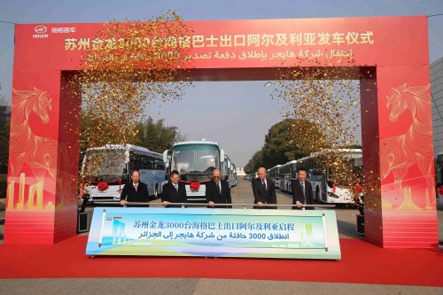 此次出口的客车包括8米、11米新V系客车及12米全承载公交车等多个车型,是阿尔及利亚"万辆公交车更新计划"的重要组成部分。苏州金龙凭借卓越的产品性能、成熟的品牌影响力和深厚的市场基础,在激烈的国际竞争中脱颖而出,成功获得3000辆采购订单。