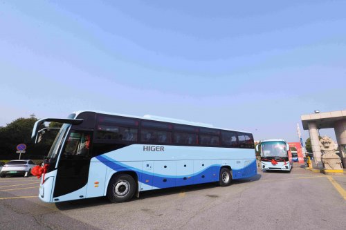 发车仪式现场,一辆辆海格客车整齐停放,车前的红花映照出振奋人心的氛围。随着福汽集团党委副书记,金龙汽车集团党委书记、董事长陈锋正式宣布发车,一辆辆海格客车缓缓驶出苏州金龙厂区,正式启程前往阿尔及利亚。阿尔及利亚驻华大使馆代表,创元集团党委副书记、总经理高草原,苏州金龙党委书记、董事长陈笃廉,总经理黄书平,副总经理郑春辉、海外销售总经理姜海峰等共同见证了这一里程碑时刻。