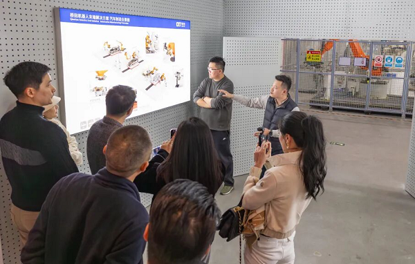 活动开始前,桥田智能创始人刘小平带领同学们参观了实验室和展厅,通过机器人手臂的实操演示,深度了解机器人末端工具的应用工位和操作工序;随后又深入组装制造车间,实地观察生产流程里的精细化管理和协同模式。