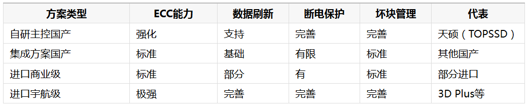 进口宇航级SSD:数据完整性保障最强,但价格极高,供应链风险大。