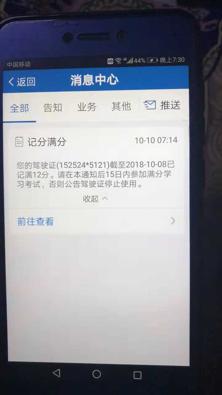 翟女士收到的驾照分被扣光的通知。 受访者供图