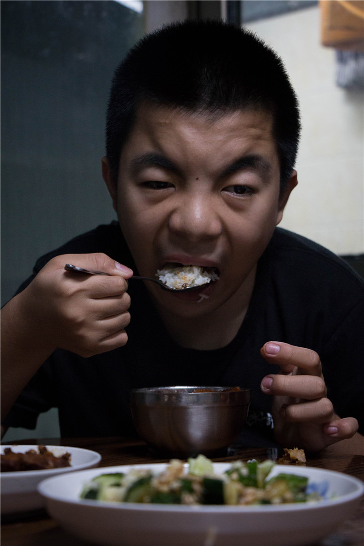 △ 2018年9月13日,北京前门,Prader-Willi 综合征患者张锦鹏在吃他的小半碗米饭,这是同龄孩子大概一半的进食量。在确诊后通过打生长激素配合减肥,今年六年级的张锦鹏身高164cm,体重已经降至118斤。该病国外不同人群发病率约为 1/30000 ~ 1/10000 之间,我国缺乏流行病学资料。