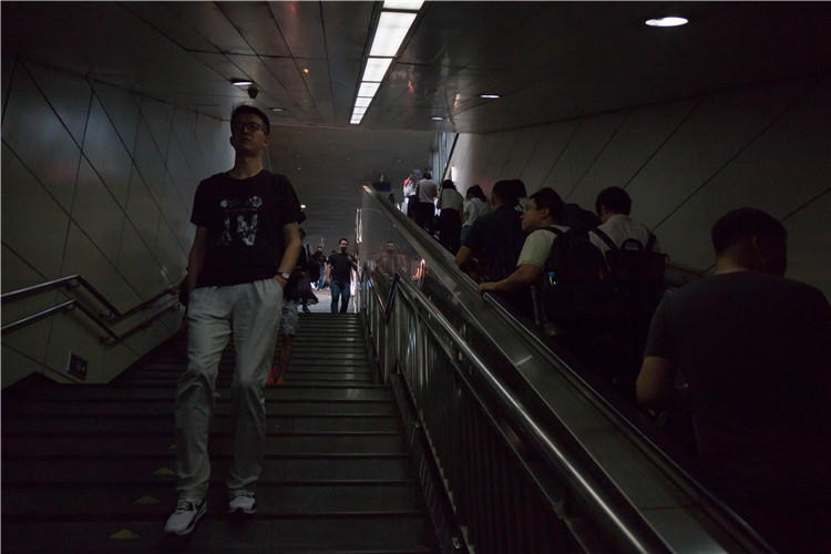 △ 2018年8月28日,地铁安贞门站,苏佳宇在人群中吸引路人目光。