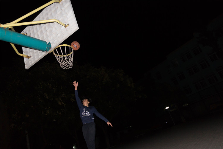 △ 2018年10月10日晚,北京朝阳区望京,潘龙飞在小区里打篮球。他每周至少来打2次,一次30分钟。龙飞爱上篮球是高二的时候,那时他还没确诊,常喜欢看班里心仪的男生打篮球,是个“迷妹”。开始注射人绒毛膜促性腺激素后,男性化特征逐渐明显,有力气投篮了,运动起来更自如。