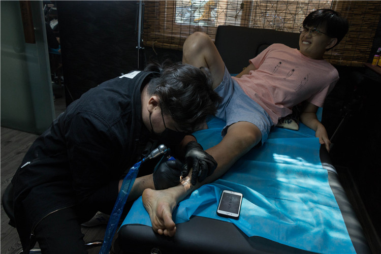 这是他第二次来这家店,去年文的时候技师听完他的故事执意给他免单,“这么有意义的事也算上我一份力”,技师笑着说。