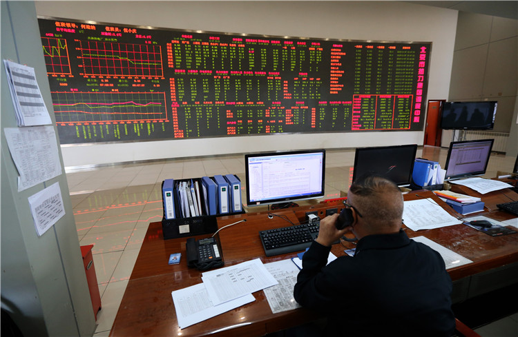 北京市热力集团调度中心,工作人员在大屏幕前监控试供暖运行数据。新京报记者 薛珺