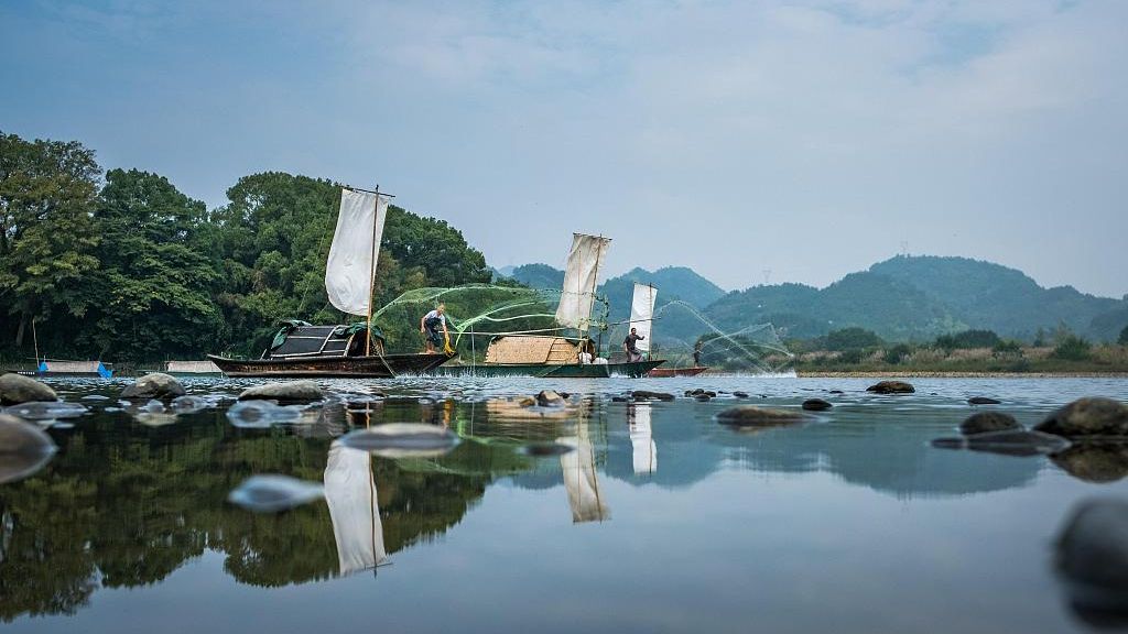 ▲浙江丽水古堰画乡的捕鱼人在瓯江上捕鱼。图文无关 图片来源:视觉中国
