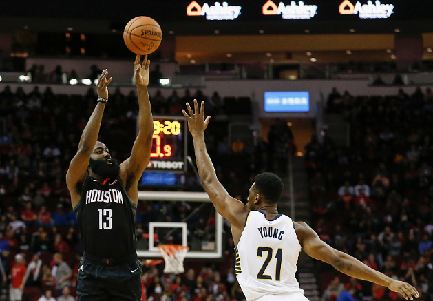 哈登得分创赛季新高,助火箭115比103战胜步行者。 图/视觉中国