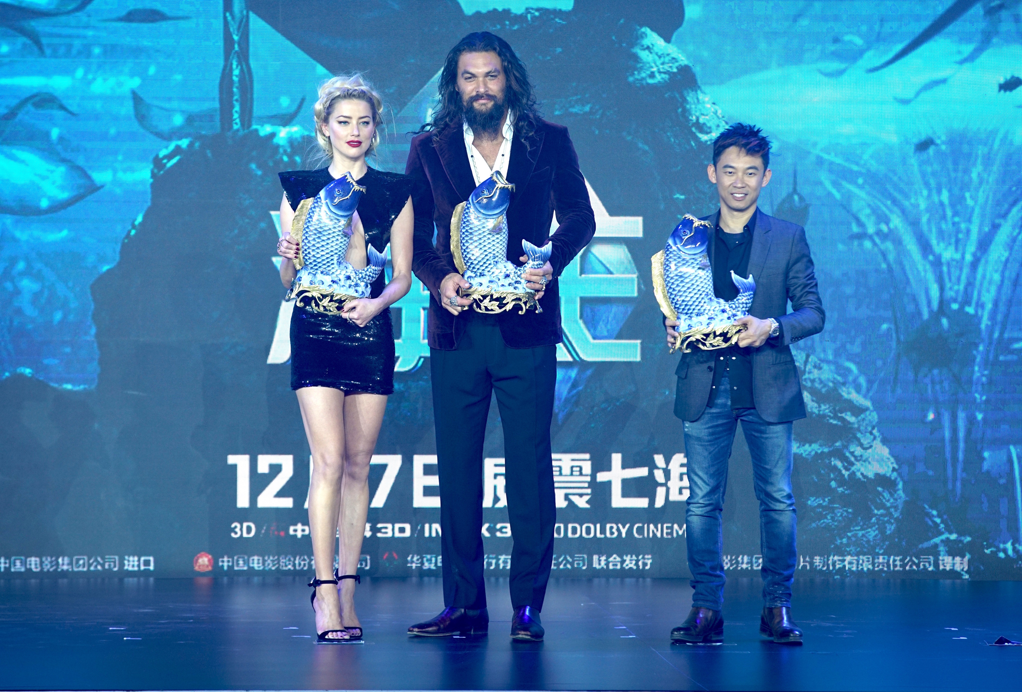 新京报讯(记者 滕朝)11月18日,由温子仁执导,杰森·莫玛、艾梅柏·希尔德主演的DC超级英雄电影《海王》在北京举行了发布会。导演携两位主演出席了发布会,并分享了拍摄过程中的故事。发布会最欢乐的时刻来自送礼环节,活动组织者为三位主创准备了三条精美的锦鲤瓷器,而“鱼跃龙门”的典故也像极了海王的经历:从一个fish boy一步步成为亚特兰蒂斯的王。如今海王本王手捧锦鲤,直接变身“最强锦鲤”。据悉,影片将于2018年12月7日在中国内地上映,领先北美两周时间上映。