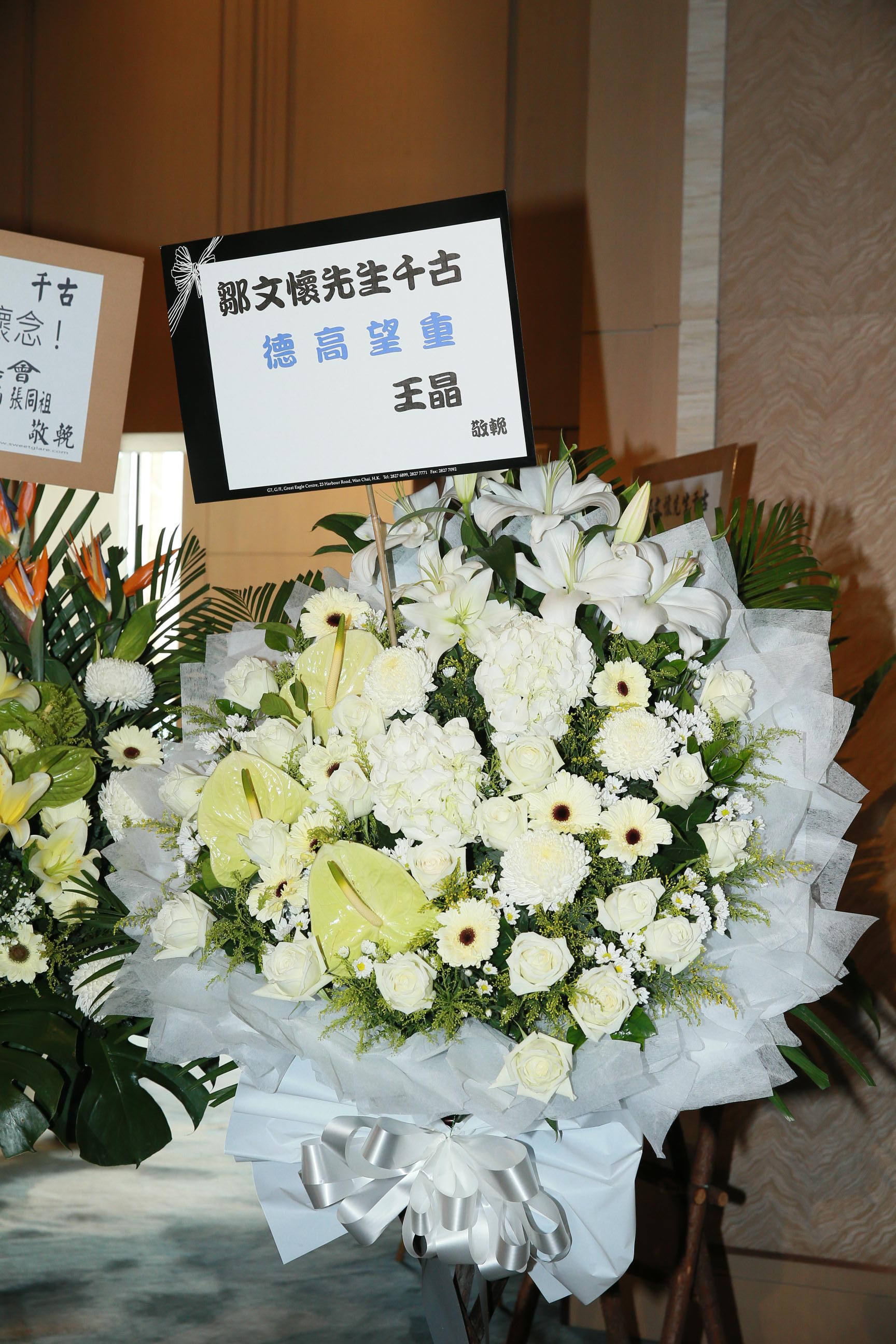 成龙王晶等追思邹文怀,刘德华周星驰送花牌