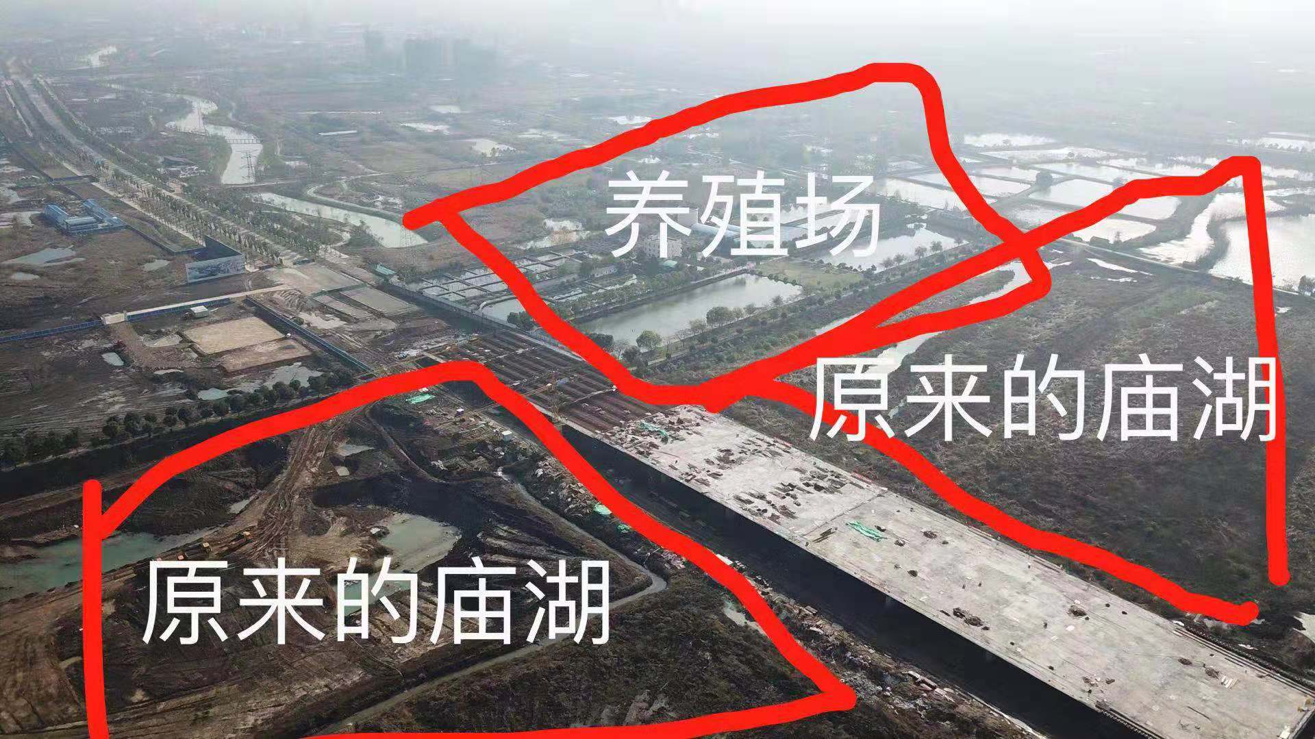 施工中的羋月桥从养殖基地穿过。新京报记者 逯仲胜 摄