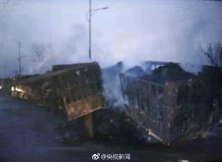 通报称,事故中过火大货车38辆、小型车12辆。央视新闻微博截图
