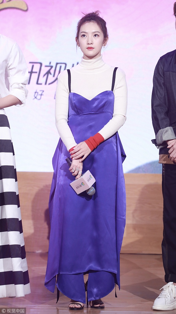 前些日子,在网剧《双世宠妃2》的发布会上,“小花”孙艺宁就以白色烟管领毛衣,搭配“紫电光色”丝绒吊带的造型出现,一身占尽今冬两大流行元素,虽不张扬,却仍显品质。