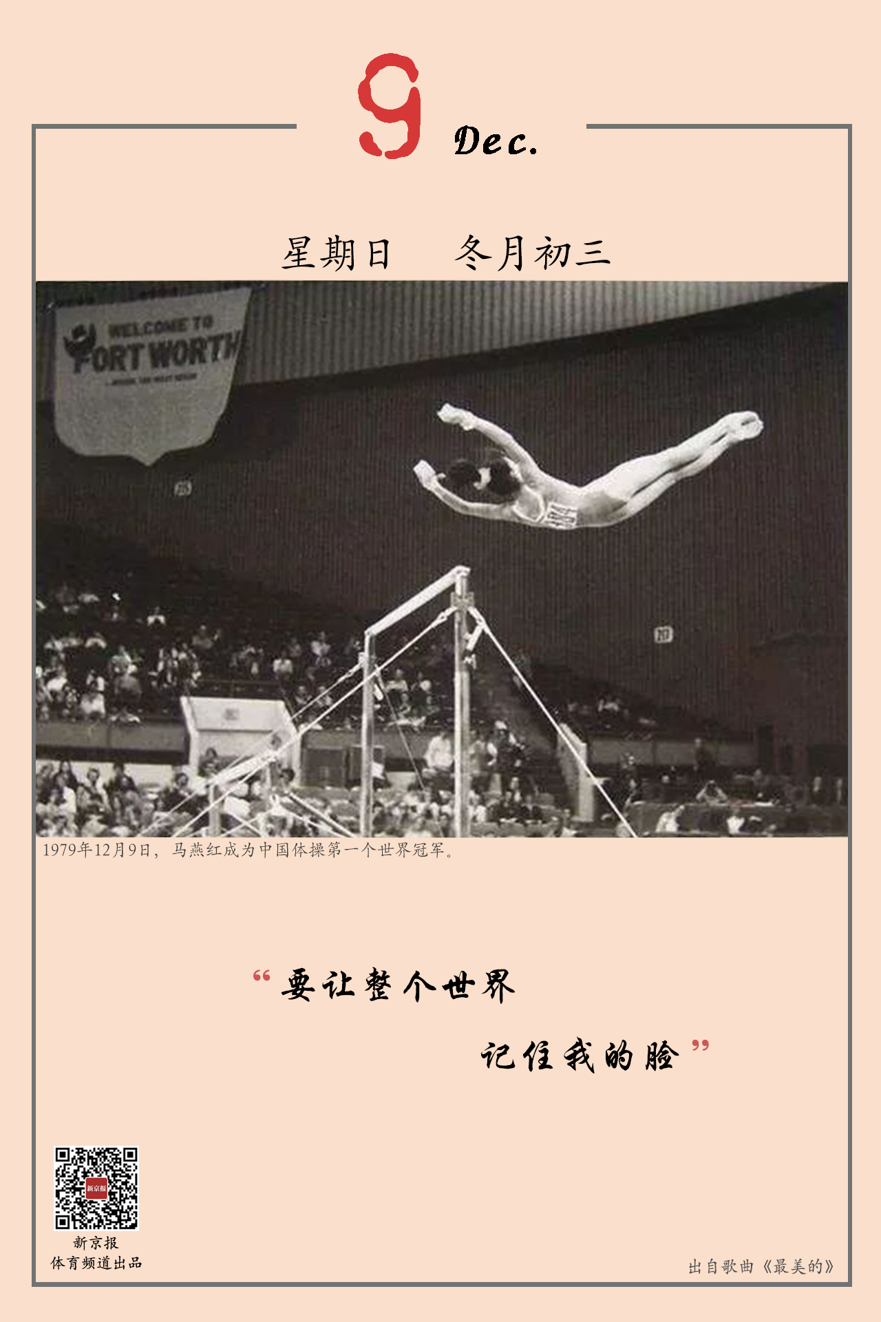 1979年12月9日,在美国沃斯堡举行的第20届体操世锦赛上,马燕红夺得高低杠金牌,成为我国体操史上的第一个世界冠军。