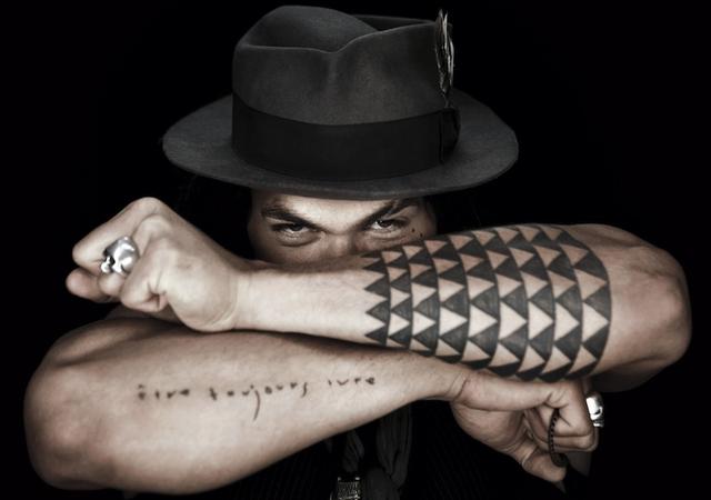 杰森的左小臂有一处三角组合文身,不仔细看会和海王身上的鱼鳞状文身混淆。其实这个文身是对夏威夷守护神的致敬。莫玛家的守护神是鲨鱼,黑色的三角象征着鲨鱼的牙齿。“理论上这个文身象征着驱散心中阴暗面,洒进阳光。这一点我还在努力。”