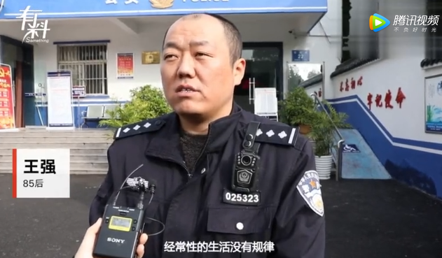 ▲85后民警王强在接受采访时说生活经常没有规律。图片来自我们视频截图。