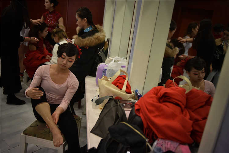 选手在后台准备。新京报记者 王飞 摄影报道