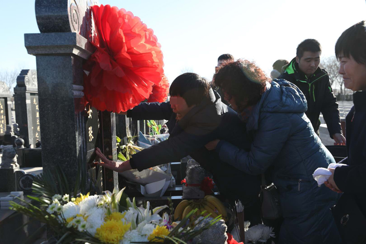 10时许,永定塔陵,零下5度,大风。张红父亲张仁俭搀扶着妻子踉跄地走向墓地。他们手上拎着女儿生前最爱吃的食物,还有一家人一早亲手包的饺子。