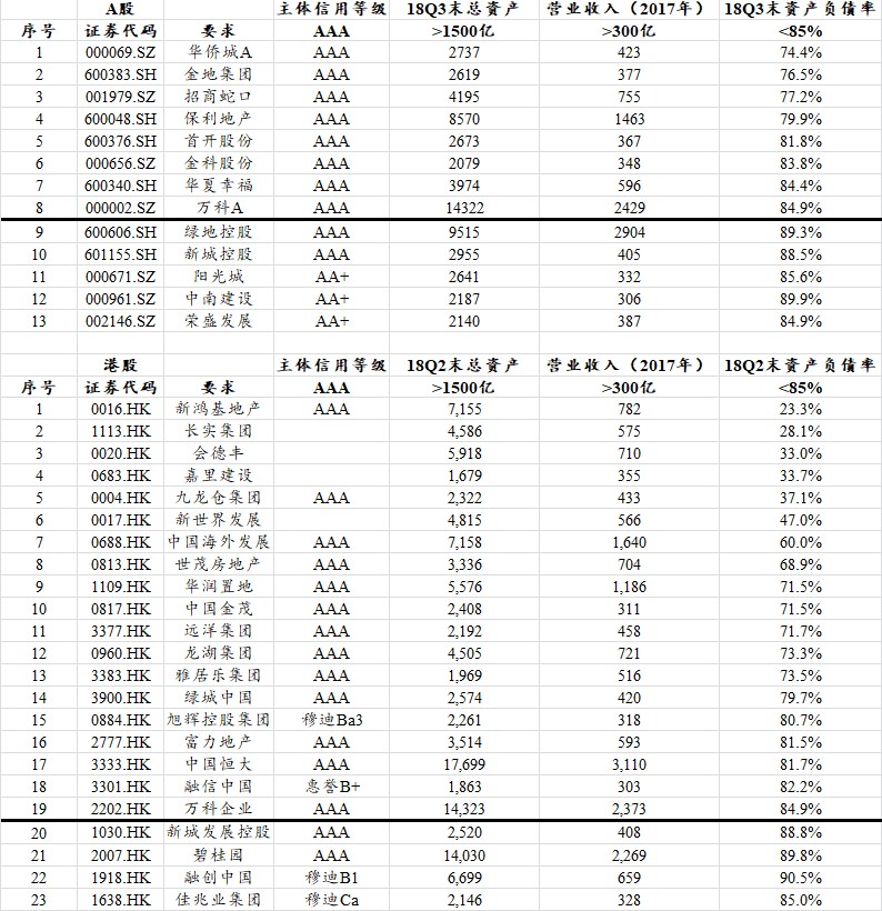 综合上述多项条件,根据民生证券的研究报告梳理,潜在受益的房企达到36家,其中,A股上市房企13家,港股上市房企23家。由于目前国内外对房企信用评级的判定标准不同,所以AAA级房企的认定标准不一,所以不同机构的受益企业有所不同。