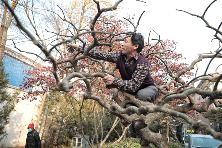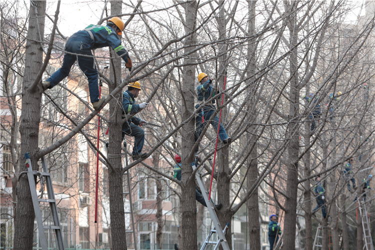据现场工作人员介绍,树木修剪的要点在于修剪造型、技术规范、安全操作等方面,在冬季进行修剪,需要对树枝的长势进行预判,剪去多余的枝杈,来年树木发芽开花才会形成更好的视觉效果。新京报记者 王嘉宁 戴轩 摄影报道