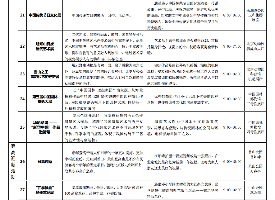 作为不少游客每年的固定项目,今年元旦,位列三山五园的香山香炉峰、中轴线上的景山公园万春亭也将继续开展登高迎新活动,香山寺复原成果展、景山历史文化展等也将同期展出。