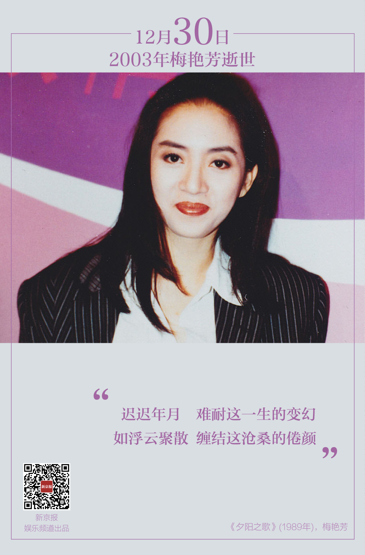 2003年12月30日,梅艳芳因宫颈癌导致肺功能衰竭在香港养和医院病逝,年仅40岁。治丧委员会以《别矣,香港的女儿!》为题刊登讣闻。