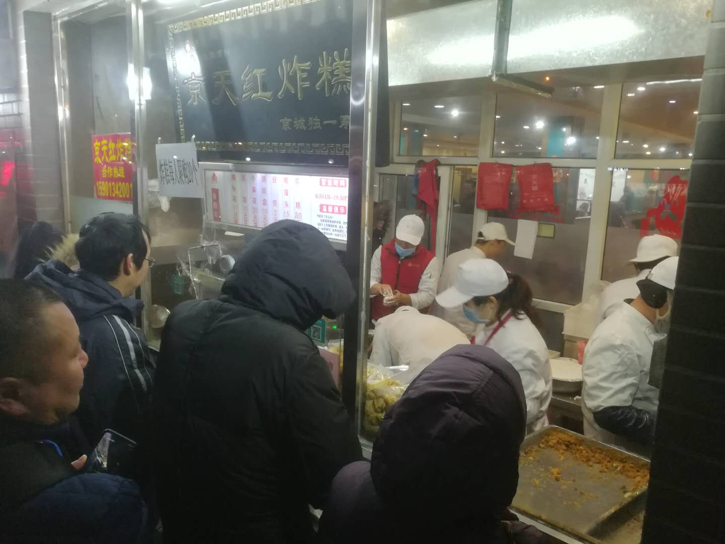 连续几日,许多附近的居民穿着厚羽绒服、戴着毛线帽和口罩在虎坊桥“京天红”炸糕店前排起了蛇形长队,最长的排队时间甚至超过了7个小时。